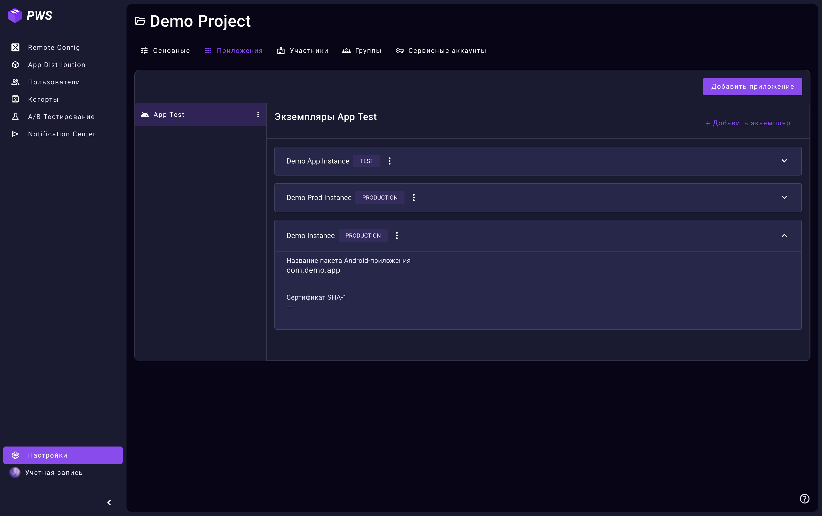 - Используйте понятные названия экземпляров: «Prod iOS», «Test Android»